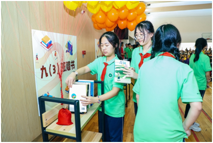 赠的是图书,盼的是希望。“长风破浪会有时,直挂云帆济沧海”“会当凌绝顶,一览众山小”“没有天生的信心,只有不断培养的信心”。扉页上一句句鼓励人心的话语是初三学子们对学弟学妹们的美好期望、力量的传承。同时也用他们的一点小小行动来答谢母校,愿母校的明天更加辉煌!
