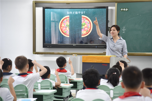 课堂上,易老师通过让学生动手操作、观察和表达,帮助学生养成主动探索的习惯。学生在折各种纸片的活动中,逐步直观地建立起分数的模型;在说、读、写、做的活动中,逐渐理解了几分之一的含义。整节课,所有学生都积极参与课堂、融入课堂,始终沉浸在自主探索的氛围中。