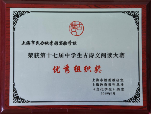近年来,在中学生古诗文大赛中,26位同学闯入上海市决赛,147人次获嘉定区一等奖,学校多次荣获“优秀组织奖”。