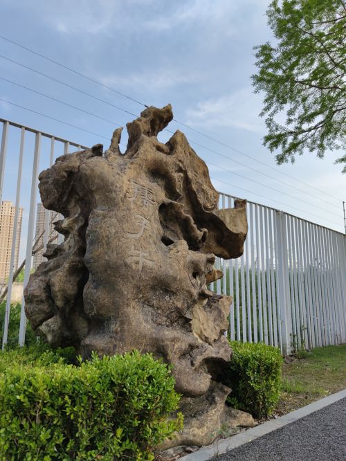 桃李园,因石而刚而健,而秀而雅,或巉峭,或玲珑,或刚毅,或柔韧,状貌各异而皆有性情。赏石有得,抚石有悟,石虽微物,关乎宏旨,故作此石语,愿吾校师生共勉焉!